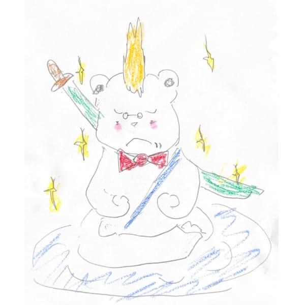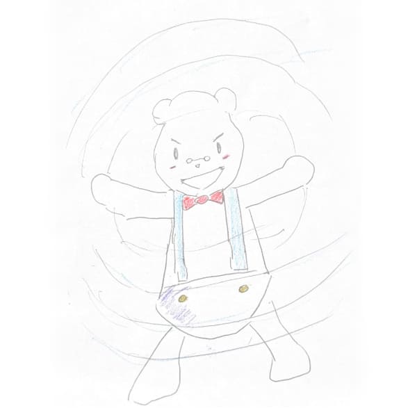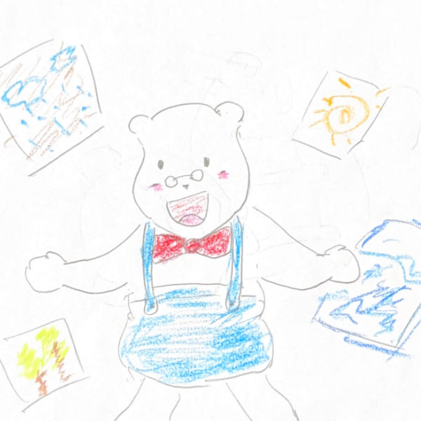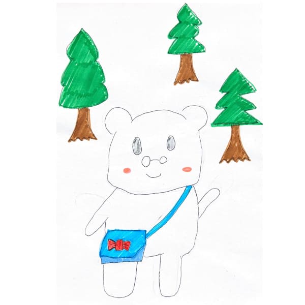 家庭教師の英数国理社クラインのPRキャラクターホッキョクグマのくらのすけがやる気の木を丁寧に育て、大きく成長したことによろこんでいる画像